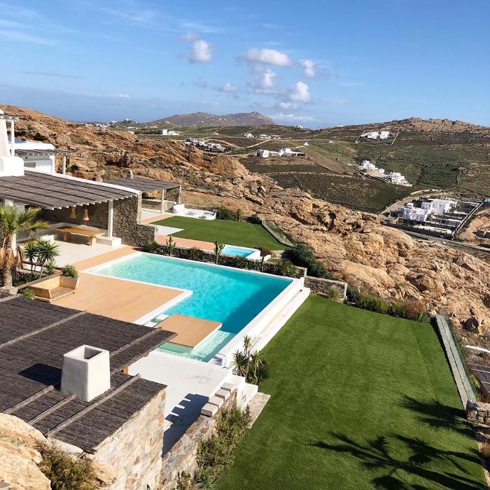 Στην PANDA SPORTS, με 30 χρόνια εμπειρίας, ξέρουμε τι σημαίνει να έχεις έναν χώρο που να δείχνει άψογος όλο τον χρόνο. Ειδικά στις Κυκλάδες, σε νησιά όπως η Μύκονος και η Πάρος, όπου το περιβάλλον είναι απαιτητικό: έντονη ηλιοφάνεια, δυνατά μελτέμια, αλάτι από τη θάλασσα και υψηλές θερμοκρασίες το καλοκαίρι. Γι’ αυτό επιλέγουμε σύγχρονους συνθετικούς χλοοτάπητες που διατηρούν τη φυσική όψη τους, σαν αληθινό γκαζόν, χωρίς να σε ταλαιπωρούν με ξεράσματα, κιτρινίσματα ή συνεχή φροντίδα και με σημαντικά μειωμένη ανάγκη για νερό.
