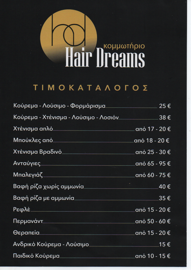 Κομμωτήρια στον Άγιο Στέφανο: Κομμωτήριο HAIR DREAMS Άγιος Στέφανος Αττικής. Κούρεμα γυναικείο, ανδρικό, παιδικό, Βραδινά χτενίσματα, Νυφικά χτενίσματα