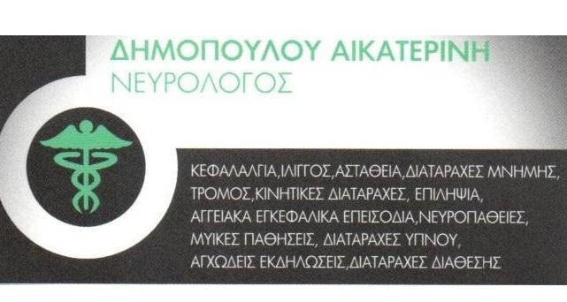 Το Νευρολογικό ιατρείο Αικατερίνη Δημοπούλου αναλαμβάνει κεφαλαλγία, ίλιγγος, αστάθεια, διαταραχές μνήμης, τρόμος, κινητικές διαταραχές, επιληψία ,αγγειακά εγκεφαλικά επεισόδια, νευροπάθειες, μυικές παθήσεις, διαταραχές ύπνου, αγχώδεις εκδηλώσεις, δαταραχές διάθεσης κ.α.