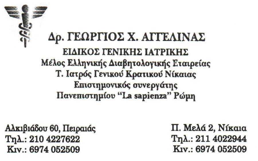 Δρ. Αγγελίνας Γεώργιος, Γενικός ιατρός Πειραιάς, Ομοιοπαθητικός γιατρός Πειραιάς